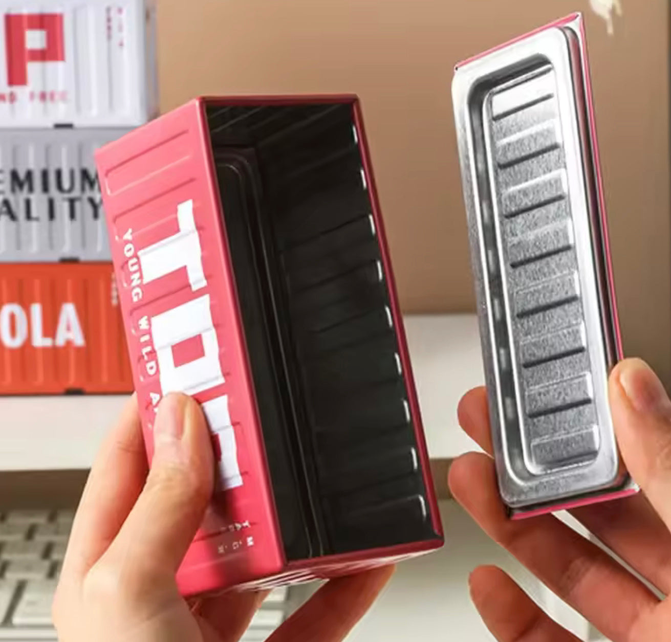 The storage box lid can be opened and used to store stored items - This storage box adopts a unique sea freight container design, with various patterns on the container, which can add industrial fashion to the office desk.