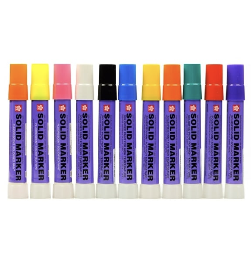 Sakura Solid Marker marks virtually any surface, anywhere and at any angle. It can mark through dust, rust, and water! This easy, twist action advance marker dries within minutes and is permanent once dry.